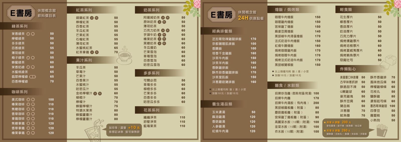 B方案除了2小時大眾閱覽區任意看外,還可選擇50元內飲品一杯+炸食點心15選1,給您帶來極致享受的閱讀體驗。